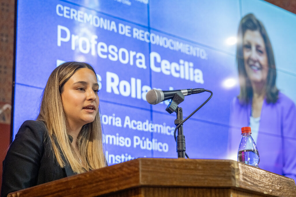 Durante su discurso, la rectora Durán Santis subrayó la identidad que la académica imprimió en su labor: “Hay personas que dejan huella, no sólo por lo que hacen, sino por cómo lo hacen…La profesora Cecilia Ríos representa precisamente eso, una vida universitaria entregada con seriedad, con compromiso y afecto por esta comunidad”.